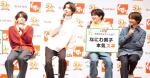 スギ薬局50周年新CM発表会に出席したなにわ男子の(左から)大橋和也、高橋恭平、大西流星
