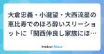 ... 大西流星の恵比寿でのほろ酔いスリーショットに「関西仲良し家族にほっこり」「大倉パパ幸せそう」「みんなかわいい」. ライブドアニュースを読もう! 芸能...